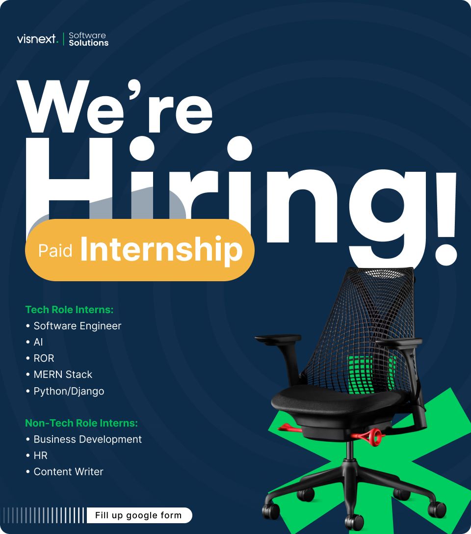 Visnext offers hands-on training and mentorship in cutting-edge technologies. If you’re passionate about coding, artificial intelligence, or web development, this is the perfect opportunity to elevate your skills. Available roles include: